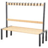 The Premium Cloakroom double Sided bench is a great way to customise and design your School cloakroom for All Ages. Constructed from solid ash and anti-bacterial coated steel frame; this product includes single sided indestructible pegs, slatted bench and storage shoe rack. These units are supplied with floor fixing brackets to ensure a safe and sturdy choice for busy environments.