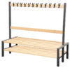 The Premium Cloakroom double Sided bench is a great way to customise and design your School cloakroom for All Ages. Constructed from solid ash and anti-bacterial coated steel frame; this product includes single sided indestructible pegs, slatted bench and storage shoe rack. These units are supplied with floor fixing brackets to ensure a safe and sturdy choice for busy environments.