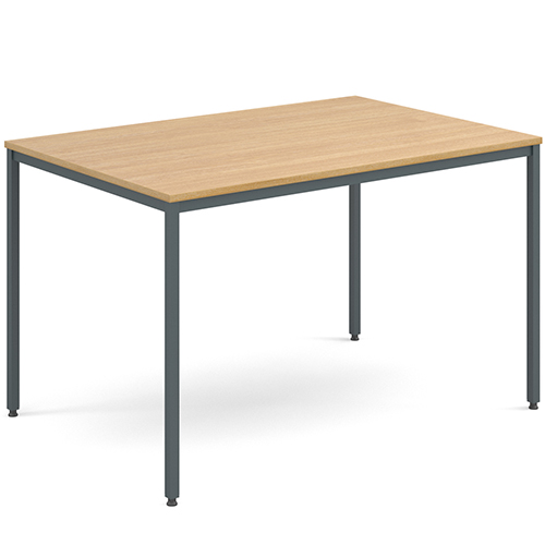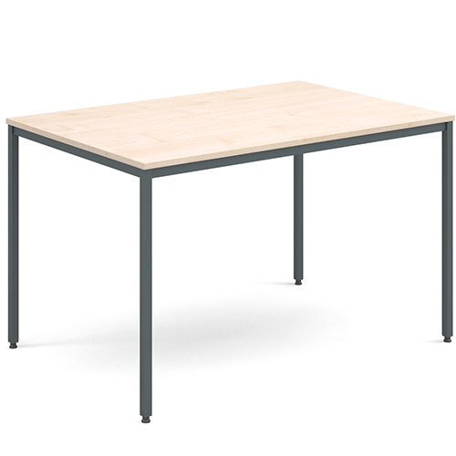 Rectangular Flexi Table with Graphite Powder Coated Steel Frame, 1200mm x 800mm. Our flexible classroom table solutions are perfect for a wide range of applications, providing you with all the functionality and mobility you need in a solid, reliable package that will last. With a choice of sizes, table top finishes and frame colours, the Rectangular Flexi Table can be used in multiple combinations to perfectly fit your learning style. The 18mm scratch-resistant top and rigid ABS edging make this table tough enough for any environment, while the graphite powder-coated steel frame ensures it looks good too.