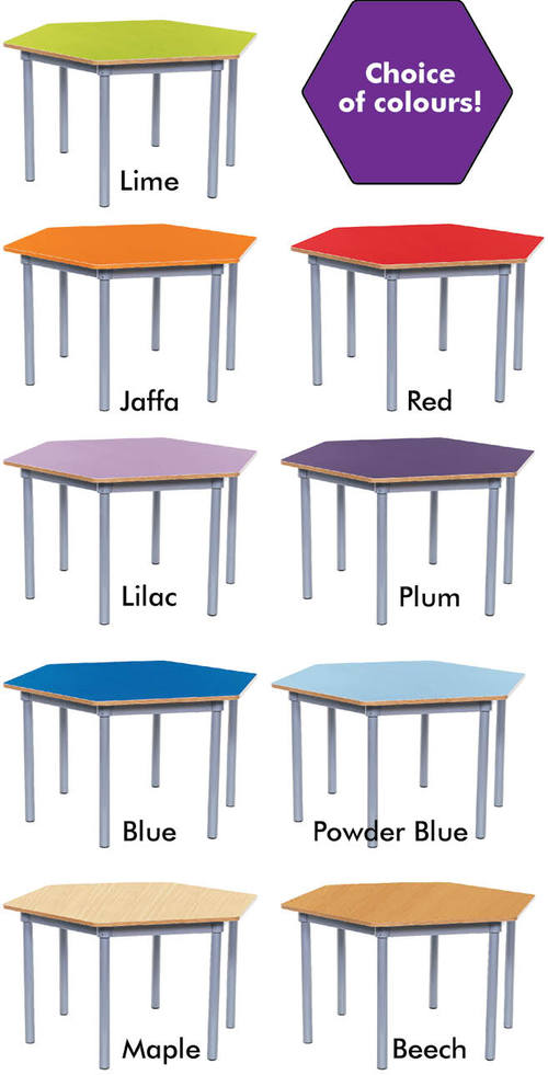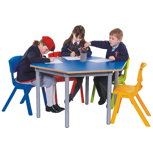 The KubbyClass Hexagonal School Table is a perfect addition to any classroom. The bump resistant, ply effect PVC Edges and a choice of 6 heights available ensure that students of all ages are protected within their learning environment.
