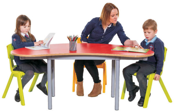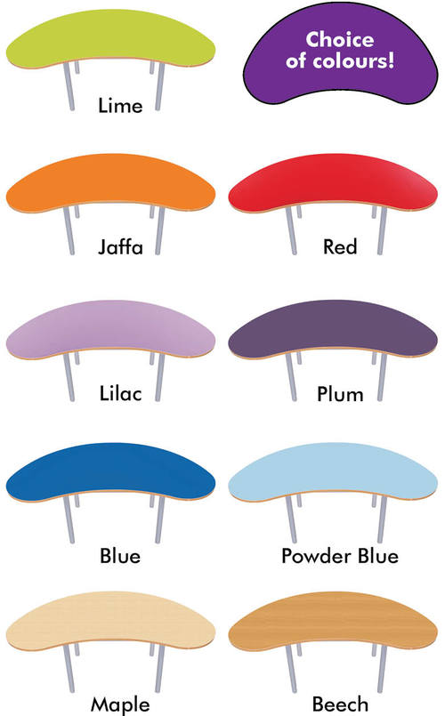 The KubbyClass Kidney Bean Classroom Table is a perfect addition to any classroom. The bump resistant, ply effect PVC Edges and a choice of 6 heights available ensure that students of all ages are protected within their learning environment.