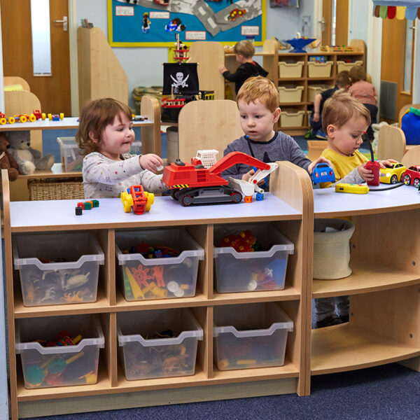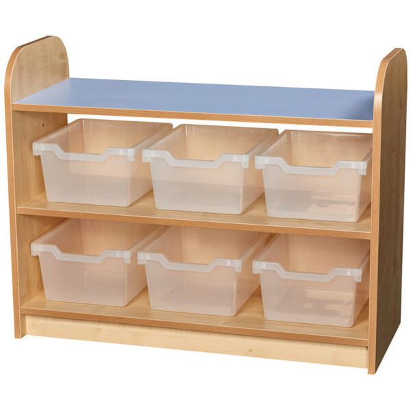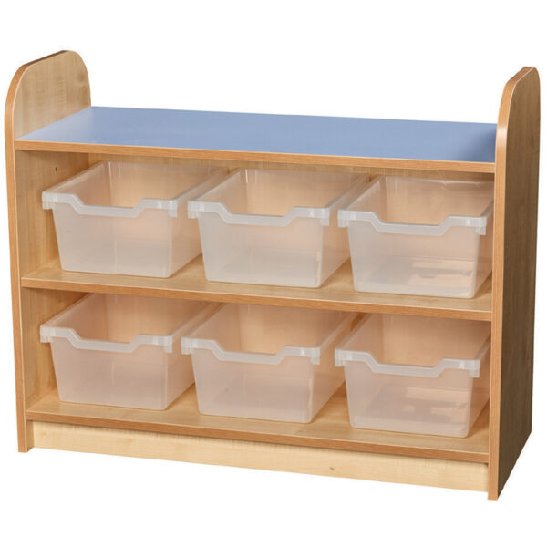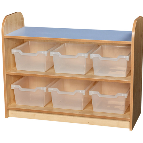 With its six clear trays, it is perfect for storing and displaying items. These beautiful finished tray units come in a choice of, lilac, powder blue or maple, are sure to catch the attention of any child. The curved sides of the unit have been incorporated for safety and visuals. The unit is solidly constructed and is sure to withstand any wear and tear.