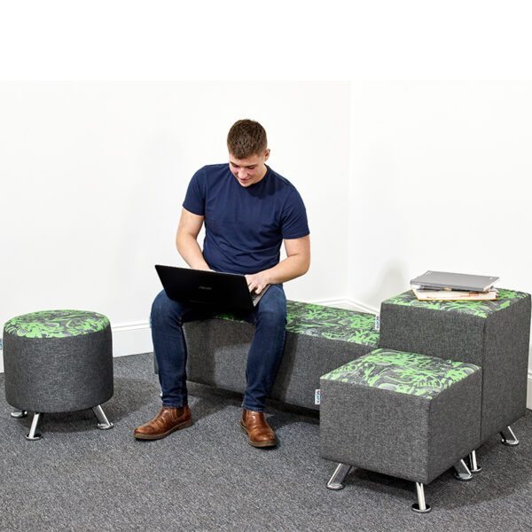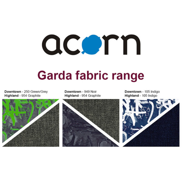 The Acorn Garda Range offers an innovative approach to seating, combining style, versatility, and long-lasting comfort for reception and breakout environments. With a graffiti-inspired printed seat top and contrasting border, this contract-grade seating makes a bold statement in any contemporary setting. Available in Green/Grey & Graphite, Noir & Graphite, and Indigo colour finishes, each unit stands out while seamlessly blending with various design schemes. Supported by angled polished chrome legs, the range balances modern aesthetics with Crib 5 fire-resistant fabric for enhanced safety. Measuring 650mm in height, 450mm in width, and 450mm in depth, these seats can also serve as armrests or compact work tables for books and laptops, adding multipurpose functionality. Compatible with other Garda products, the range allows you to create bespoke seating layouts with ease. Delivered fully assembled at no additional cost, with an estimated delivery time of three to four weeks, the Garda Range is a practical yet stylish choice for dynamic learning or office spaces