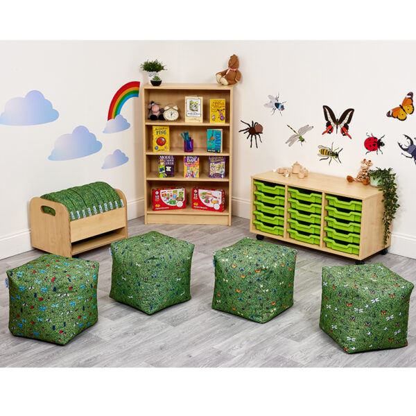 Bring nature indoors with the Assorted Bugs on Grass Cube Seats, a playful and educational seating option designed to spark curiosity about the natural world. Made from bean-filled polyester, these soft, cushioned cubes are lightweight, portable, and crafted to mould comfortably around a child’s posture for all-day support. Each cube is decorated with vibrant bug-themed designs set against a grass print backdrop, encouraging conversations around insects, habitats, and outdoor exploration in both classroom and home environments. Ideal for early years learning, this set of four cube seats offers flexibility in seating arrangements and complements nature-themed activities and decor. With a generous size of 385mm in height, width, and depth, each seat provides ample comfort and stability. Delivered fully assembled and backed by a one-year warranty, orders are typically despatched within three to four weeks, making these bug-inspired cubes a charming and functional addition to any imaginative space.