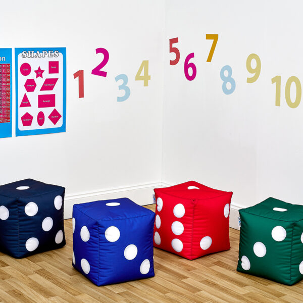 Add playful learning to your classroom with the Assorted Giant Dice Cube Seats, designed to spark curiosity and support early maths development. Each cube is bean-filled and covered with durable, easy-clean polyester fabric that’s soft to the touch yet built to last. The lightweight structure allows children to move the cubes independently, encouraging exploration and interaction during lessons or playtime. Printed with bold dice designs in assorted colours, these seats promote discussions around numbers and equations in a fun, tactile way. Perfect for sitting, crawling, and collaborative learning, the cube seats measure 385mm in height, width, and depth, providing ergonomic support that moulds comfortably around a child’s body. Supplied as a set of four, each unit arrives fully assembled and is backed by a one-year warranty, with delivery typically despatched within two to four weeks. These engaging seating cubes are an imaginative addition to any educational space looking to combine comfort, creativity, and number-based learning.