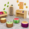 Spark curiosity and encourage communication with Tropical Fruit Small Seat Pods, a vibrant and engaging seating solution perfect for early years learning environments. Crafted from bean-filled polyester and designed to mould around a child’s body, these soft and lightweight pods deliver optimal comfort for both individual and group activities. Each pod features photo-realistic tropical fruit graphics—including Watermelon, Kiwi, Pineapple and Passion Fruit—designed to promote discussions around unfamiliar foods and build emotional awareness. Portable and versatile, they support a dynamic classroom setup while fostering a calm and nurturing space. Measuring 200mm in height and 375mm in diameter, the set of four comes with a 1-year warranty and is dispatched within 2–4 weeks.