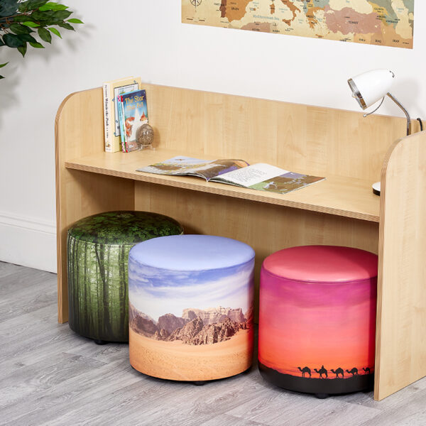 Each seat pod features a stunning landscape scene from around the world, offering six unique designs that bring creativity and global exploration into your space. The soft, ergonomic design gently moulds around the child for added comfort, while the sturdy plastic feet provide stability and support. Whether you’re looking to create a themed reading corner, a collaborative play zone, or simply add a splash of colour to your room, these seat pods are the perfect choice.