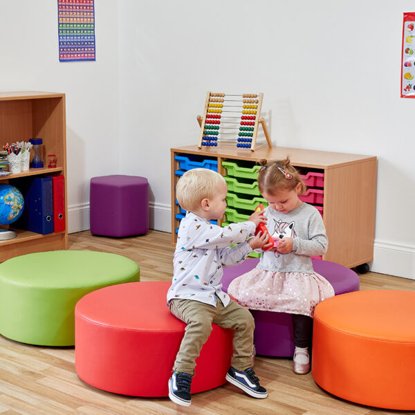Each seat measures 350mm in height with a 600mm diameter, offering generous space for comfortable seating. The ACORN Large Dot Foam Seating is available in packs of one, three, or six, and is delivered fully assembled with free delivery included. Standard delivery lead time is approximately three to four weeks. For custom colour combinations or layout ideas, feel free to contact us and explore the creative possibilities for your learning environment.