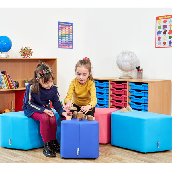Elevate your classroom with the ACORN Trapezoidal Shaped Soft Seating, specially designed for primary educational settings to offer comfort, style and flexibility. Constructed from soft foam and finished in antibacterial, wipe-clean vinyl with a Crib 5 fire rating, this seating solution ensures hygiene and safety while providing a practical and inviting learning space. The trapezoidal design allows for easy configuration into creative layouts, rows or islands and integrates seamlessly with other ACORN seating products to match any room style. Available in eight vibrant colour options including Cobalt Blue, Apple Zest, Lemon Zest, Tangerine Zest, Scarlet Red, Violet Zest, Fuchsia and Turquoise, these seats bring a cheerful burst of personality to your environment. Choose from single units or sets of three, with mix-and-match options to personalise your layout. Each seat measures 350mm in height, 650mm in width and 330mm in depth, arrives fully assembled with free delivery, and has an estimated lead time of three to four weeks.