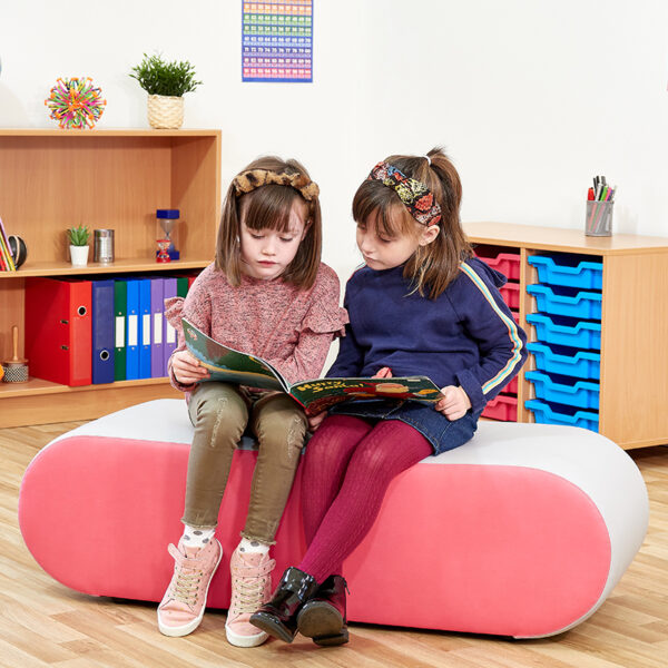 ACORN Two-Tone Large Ellipse Children’s Soft Seating offers a stylish and functional solution for early years learning environments. Featuring a bold two-tone design in grey with a choice of eight vibrant facing panel colours, including Cobalt Blue, Apple Zest, Lemon Zest, Tangerine Zest, Scarlet Red, Violet Zest, Fuchsia, and Turquoise, it enhances classroom aesthetics while supporting flexible seating arrangements. Its large ellipse shape encourages versatile use—ideal for linking multiple seats together or using individually—and integrates seamlessly with other ACORN seating products to create customised layouts. Made with soft foam and covered in antibacterial, wipe-clean vinyl with a Crib 5 fire rating, this seating ensures comfort, safety, and easy maintenance. Delivered fully assembled at no extra cost, the unit measures 350mm in height, 1200mm in width, and 450mm in depth, with an estimated delivery lead time of three to four weeks. Colour combinations can be mixed and matched to suit specific room designs—contact for customisation options.