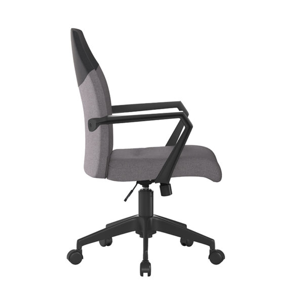 The two-tone back, angular arms, and fabric upholstery give it a contemporary edge. Enjoy smooth 360-degree swivel movement, adjustable seat height, heavy-duty castors, and a stable powder-coated nylon base. Find the perfect balance of form and function with the Corsair today.