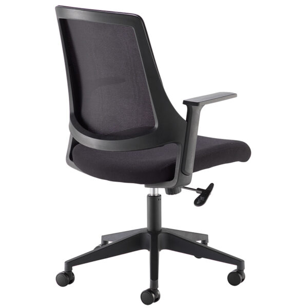 The Duffy office chair blends ergonomic comfort with budget-friendly design, proving that you don’t have to sacrifice one for the other. Its full mesh back promotes airflow, helping regulate body temperature and keeping things cool during long hours at the desk. With a clean, contemporary silhouette and a gently curved backrest, Duffy delivers both style and support. Fixed arms add to its streamlined look, while the black fabric seat pad complements the breathable mesh for a balanced aesthetic. Beneath the surface, the chair features a swivel tilt mechanism with adjustable tension and a locking function, supported by a sturdy five-star nylon base with smooth-gliding castors. The gas lift allows for easy height adjustment, and the standard tilt lock ensures stability when you need it most. Designed for modern workspaces, Duffy is as practical as it is polished.