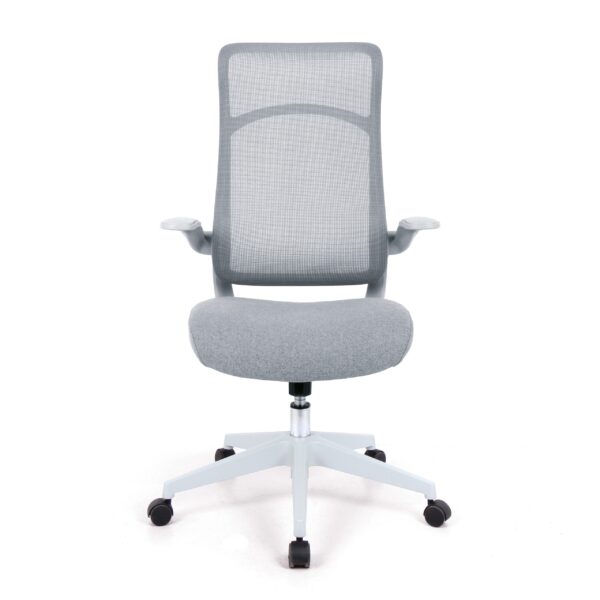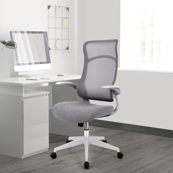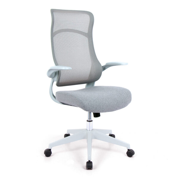 Introducing the Lynx Grey High Back Designer Mesh Back Chair with Fabric Seat, the epitome of contemporary comfort and elegant office ergonomics. Cultivate the perfect posture with the posture curved mesh back that gently cradles your spine, while the deep foam seat, swathed in a contrasting fabric, embraces you in plush support. With its sleek white frame, fold-back arms, seat height adjustment, and user-controlled tension settings, this is not just a chair – it’s a luxury you can sit on.