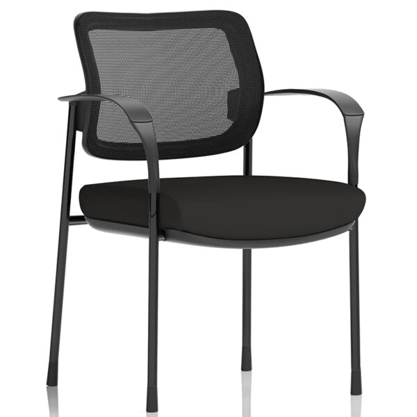 Make meetings more comfortable and visually refined with the Brunswick Deluxe Visitor Chair. Designed with a generously sized backrest and a deeply cushioned seat, it offers lasting support for extended sessions. The wave-shaped armrests add a contemporary touch, while the lightweight mesh-back version features a breathable padded cloth seat, durable polyurethane armrests, and a sleek black frame. Stackable up to four high, it’s a practical choice for dynamic office spaces that value both style and efficiency