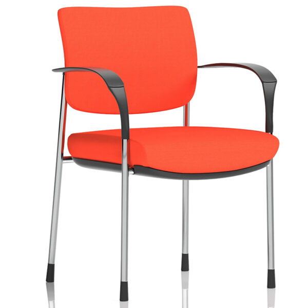 Make meetings more enjoyable with the Brunswick Deluxe Visitor Chair, designed to combine generous proportions with contemporary styling. Its oversized backrest and deeply upholstered seat provide lasting comfort, while the wave-shaped armrests add a sleek, modern touch. Built on a robust black steel frame, this version features a soft curved mesh back and padded seat for all-day support. Available in eight bespoke colours, with COM options for customers’ own fabric, it offers tailored versatility to suit any interior scheme. Stackable up to four high, it’s a practical and stylish solution for dynamic office or hospitality environments