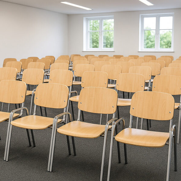 These stackable conference chairs offer a practical and comfortable seating solution for a wide range of environments. With a beech seat and curved beech backrest, they provide enhanced comfort for meetings, seminars, waiting areas, canteens, and educational settings. The lightweight yet robust Chrome frame ensures durability and easy mobility, while the space-saving stackable design allows up to 12 chairs to be stored efficiently. A well-established favourite in both public and private sector spaces, these chairs combine functionality with timeless appeal, making them ideal for high-traffic areas and multipurpose use.