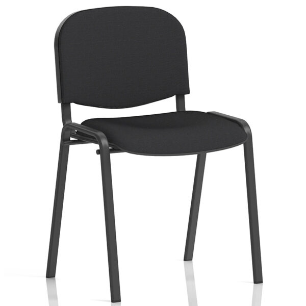 Designed for comfort and practicality, this chair features a padded fabric seat and backrest, complemented by a gently curved backrest for ergonomic support. Its lightweight yet robust black frame ensures durability, while the stackable design—up to 12 high—makes it an ideal choice for conference rooms, meeting spaces, and visitor areas.