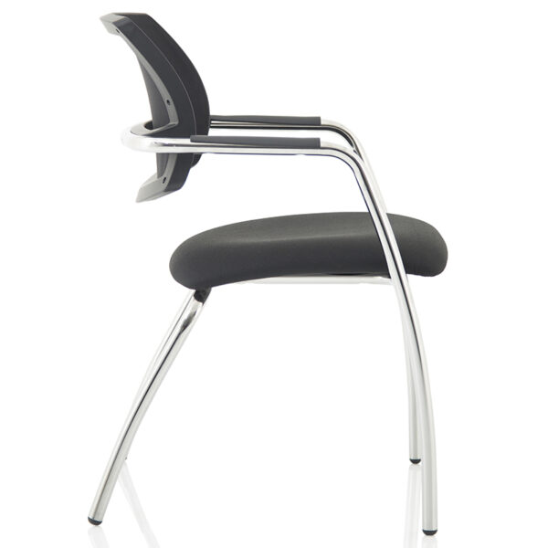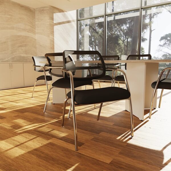 Generously sized and visually striking, the Swift chair range is designed to impress and support. Featuring a curved mesh back for breathable comfort and a cushioned fabric seat, these chairs offer a welcoming experience for any visitor. Lightweight and stackable up to four high, the Swift is available in both cantilever and four-leg chrome frame options, making it a versatile choice for meeting rooms, reception areas, or collaborative spaces.