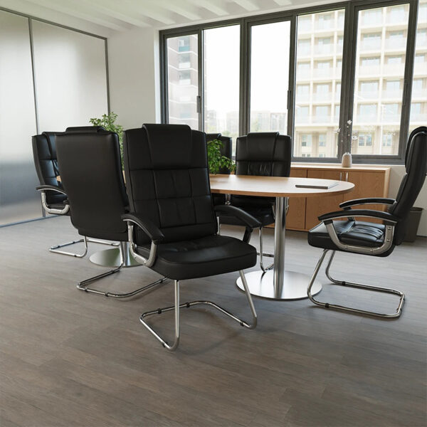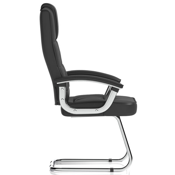 Discover the perfect complement to your executive setting with the Jenson Deluxe Black Faux Leather Cantilever Visitor Chair with Arms, an exquisite range of luxurious visitor chairs exuding elegance and sophistication. Expertly crafted with traditional style in mind, these chairs are designed to stand the test of time, both in terms of appearance and durability. Experience unparalleled comfort with these opulent yet functional executive chairs, upholstered in soft Enviro Soft Bonded Leather panels.