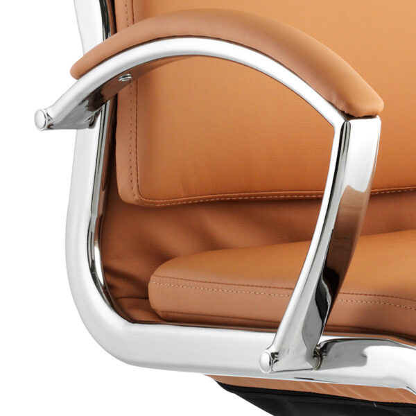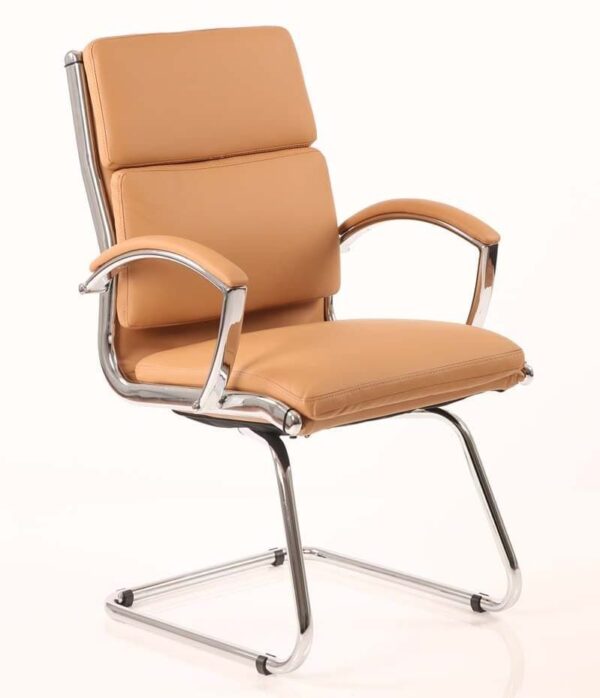 Elevate your office experience with the sophisticated and stylish Bromley Medium Back Cantilever Visitors Chair With Arms – Tan. Designed for the modern office user, this contemporary range of seats combines both comfort and class to seamlessly blend into any workplace setting. The Bromley range offers high and medium back versions as well as a visitor option, all available in your choice of black, tan, or white bonded leather upholstery.