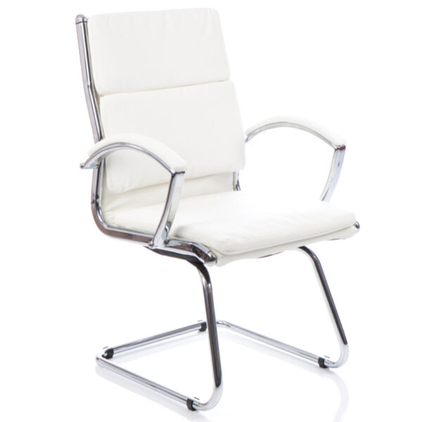 Elevate your office experience with the sophisticated and stylish Bromley Medium Back Cantilever Visitors Chair With Arms – white. Designed for the modern office user, this contemporary range of seats combines both comfort and class to seamlessly blend into any workplace setting. The Bromley range offers high and medium back versions as well as a visitor option, all available in your choice of black, tan, or white bonded leather upholstery.