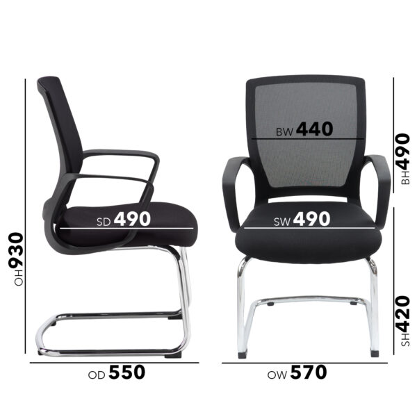 our Harper Mesh Back Cantilever Visitors Chair is the perfect solution for your Boardrooms, Receptions, and Visitor Areas. These chairs boast an eye-catching mesh back and a chrome cantilever base, making them an attractive and practical choice for your office space.