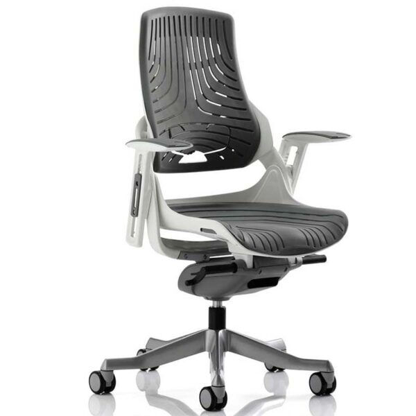 In Gel Grey Elastomer with arms, Zure delivers advanced features: synchronised glide tilt, anti-shock function, adjustable lumbar and backrest, weight tilt tension, and multi-function pivoting arms. It’s a bold blend of design and performance.
