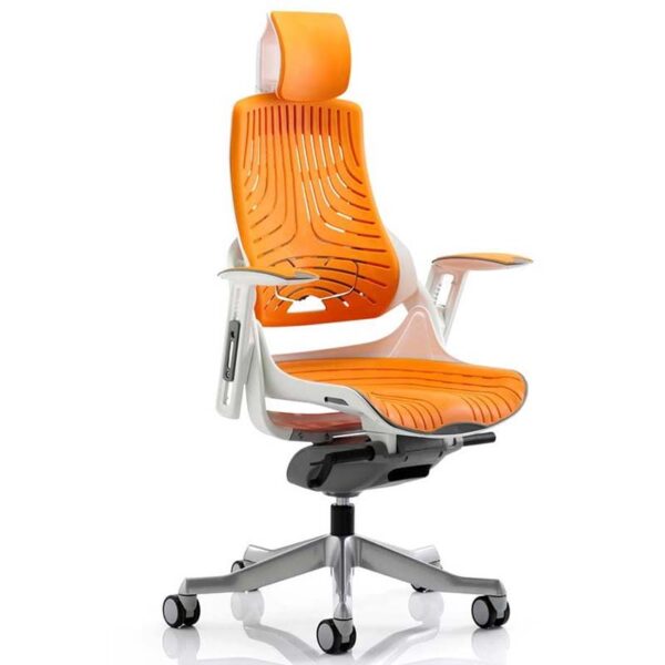 Boldly redefining comfort, the Zure Executive Chair takes seating to a new level of style and support. With options in fine mesh, plush upholstery, and sleek elastomer, it’s built for both visual impact and ergonomic precision. The contoured seat and orthopaedic frame offer all-day comfort, while the outer skeleton and touch-point technology enhance posture and feel. Fabric and leather models feature padded arms; elastomer versions add colour-coded flair. A polished aluminium base with detailed castors completes the look.