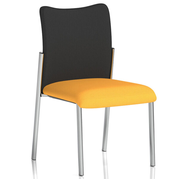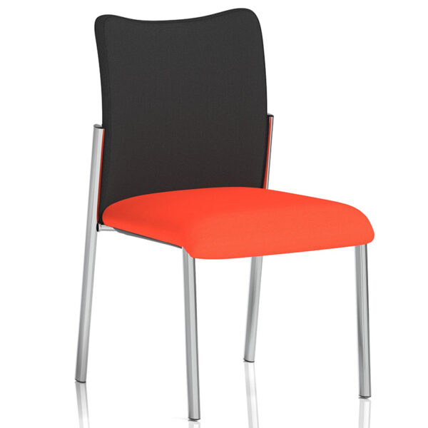 Bring comfort and style to your meeting spaces with the Academy chair, featuring a black fabric back, bespoke seat colour, and sleek chrome legs. Its armless design and generous double-curved seat and back offer ergonomic support, while the stackable frame (up to six high) ensures easy storage. Perfect for boardrooms, waiting areas, canteens, and schools—delivered fully assembled.