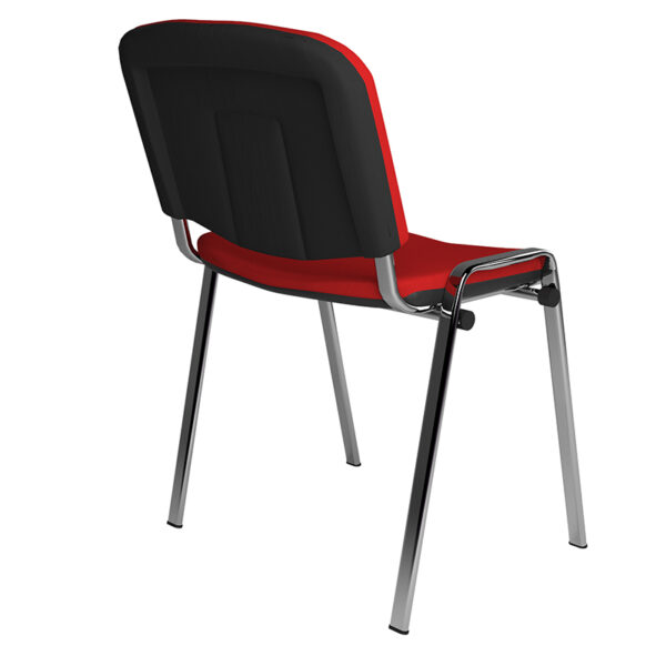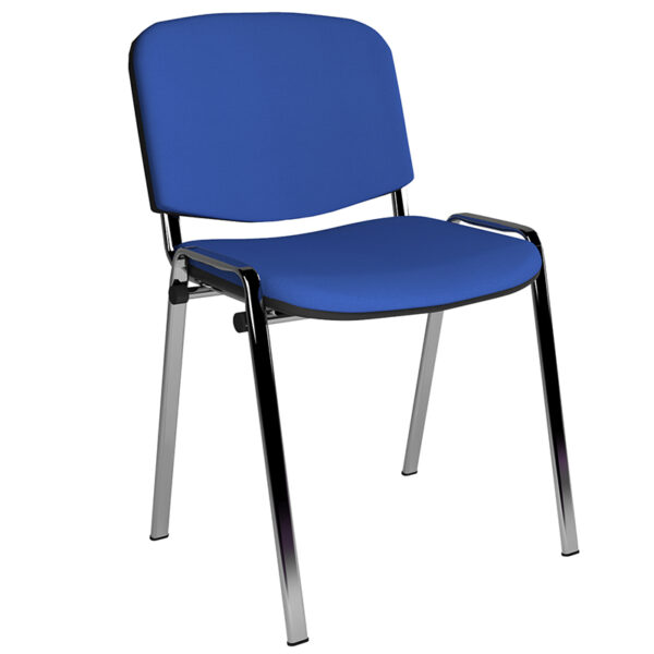 Taurus meeting and stacking chairs offer a sleek, supportive seating solution for office environments and educational spaces. This armless version features a fabric-upholstered seat and back in a traditional conference style, designed for comfort and durability. The contoured seat and back provide ergonomic support, while the polished chrome oval tube frame adds a professional finish. Ideal for training rooms, lectures, and multi-seating setups, Taurus chairs can be used individually or linked in rows with a bracket. They stack up to six high for easy storage (excluding the writing tablet version), and include plastic feet to protect flooring