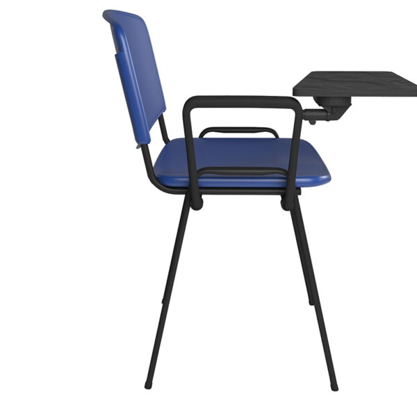 Taurus Meeting and Stacking Chairs – Polypropylene Model with Fixed Arms, Writing Tablet, and Black Frame offer a sleek, functional seating solution for office environments and educational spaces. This version features a contoured polypropylene seat and back for ergonomic support and easy maintenance. Fixed arms enhance comfort and stability, while the integrated writing tablet provides a convenient surface for note-taking, laptops, or training materials—ideal for classrooms, seminars, and conference use. The black oval tube steel frame adds a modern, professional touch, and the breathable backrest supports extended sitting. Taurus chairs can be used individually or linked in rows with a bracket, and they stack up to six high for efficient storage. Plastic feet protect flooring and ensure stability