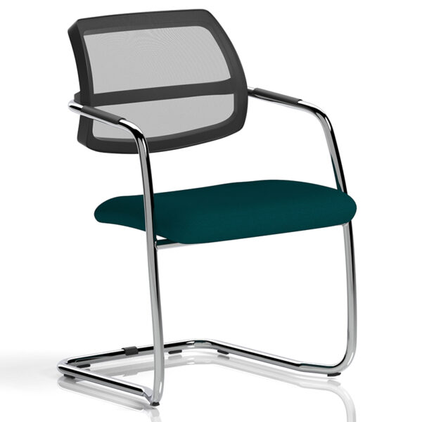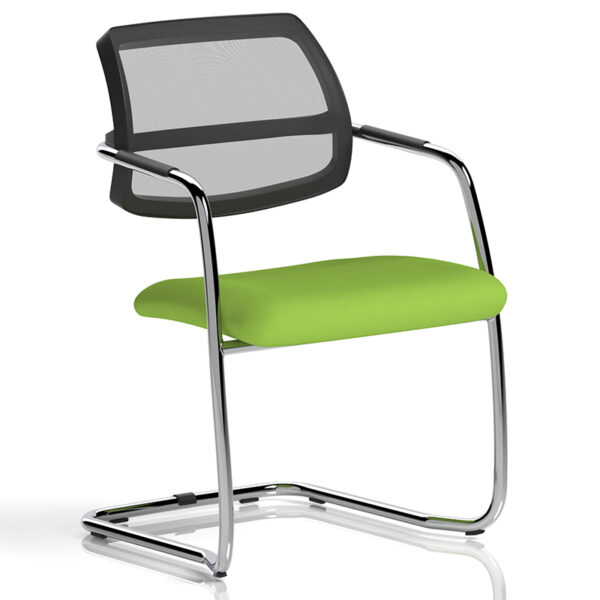 The Swift Visitor Chair combines generous comfort with sleek, modern styling. Featuring a curved mesh back and a cushioned fabric seat, it offers breathable support and tailored comfort. The lightweight chrome frame with cantilever legs adds a polished finish, while the stackable design—up to four high—makes it a practical choice for dynamic spaces. Available with a custom upholstered seat in a wide selection of colours, the Swift brings versatility and refinement to reception areas, meeting rooms, and collaborative environments.