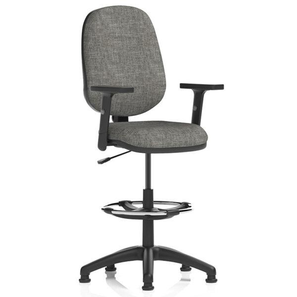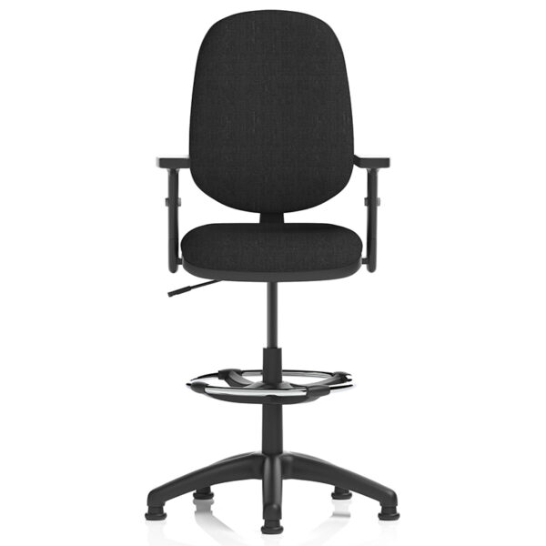 The Eclipse Plus I Lever Draughtsman Chair builds on this functionality with a padded fabric seat and contoured backrest for enhanced support. It features adjustable seat depth and backrest positioning, along with a height-adjustable foot ring for ergonomic posture at elevated workstations. Glides replace castors to ensure stability on taller chairs, making it ideal for drafting tables and counter-height setups.