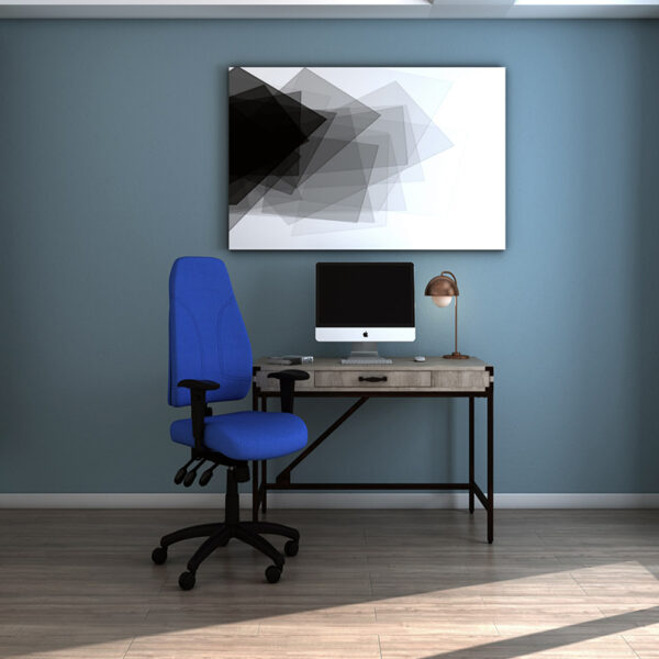 The Esme chair blends performance, modern styling, and ergonomic support, making it a popular choice for busy office environments. Its sculptured seat and contoured back with kidney shaping are designed to promote healthy posture and lasting comfort throughout the day. Featuring a height-adjustable ratchet back, tilt action, and fully adjustable back angle, the Esme adapts to individual needs with ease. Height-adjustable arms add flexibility, while the posture-shaped backrest aligns naturally with the spine for optimal support. Upholstered in black fabric, this chair delivers both durability and refined functionality