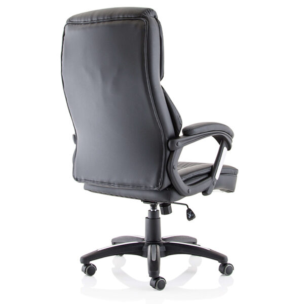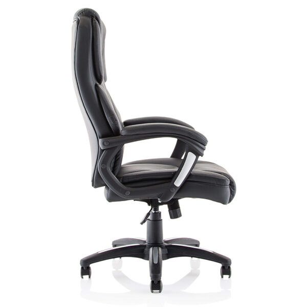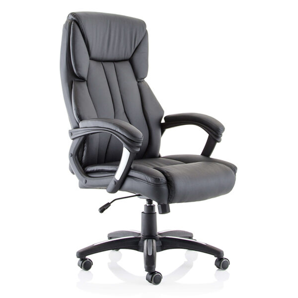 Elevate your workspace with this expertly designed executive chair, combining unparalleled comfort with modern aesthetics. Crafted with attention to detail, it features precise stitching, integral lumbar support, and an auto-tilting action, ensuring an ergonomic seating experience for long hours. The fully upholstered arms add extra comfort while contributing to its sleek, professional look.