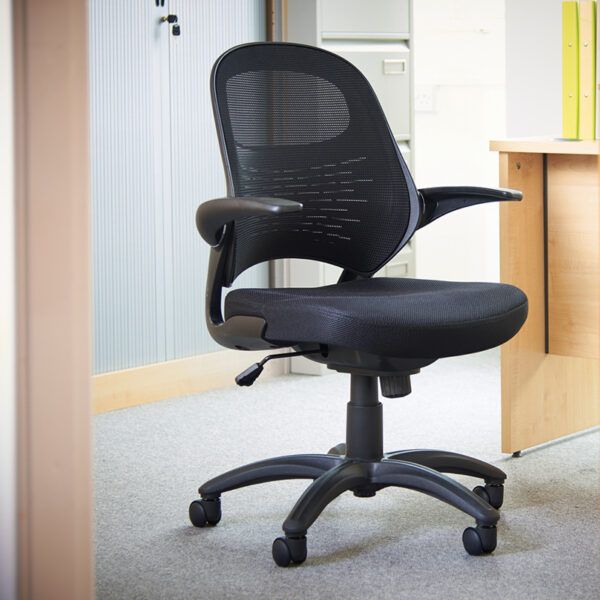 This ergonomically designed operator chair prioritizes your health and well-being, making it the perfect addition to any workspace. With innovative features such as pivot arms and an injection-moulded back, this chair provides all-day comfort and support to revitalize your body and maintain optimal circulation throughout your day. Orion Black Mesh Office Chair – Ergonomic Design, Lumbar Support, & Mesh Upholstery for Comfort, Gas Lift Adjustment, & Pivot Arms. Get yours now!
