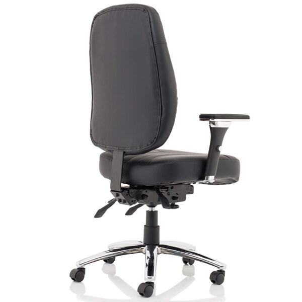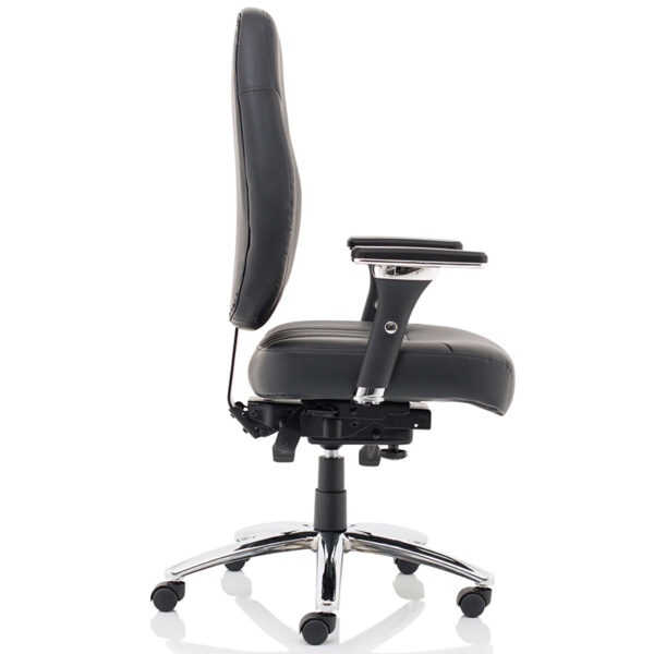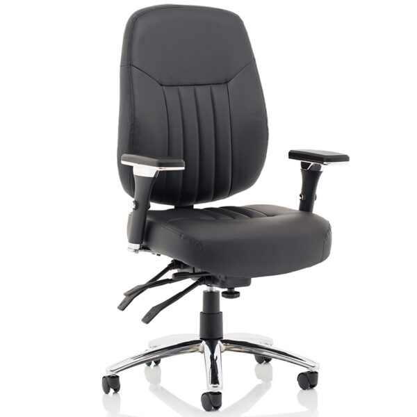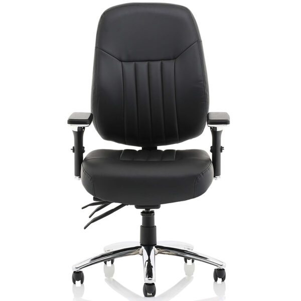 Engineered for around-the-clock support, the Barcelona Deluxe offers ergonomic comfort with a sliding, tilting seat and forward tilt functionality. Its high backrest includes adjustable lumbar support and a ratchet height feature for personalised alignment. Multi-directional armrests, breathable black leather, and a durable five-star base round out its premium features. Supports up to 158kg and includes a 1-year warranty.