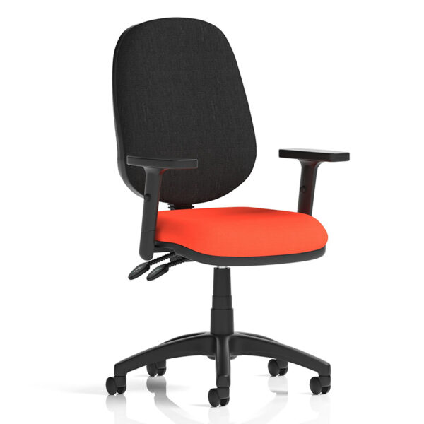 The Eclipse Plus II Ergonomic Task Chair is a versatile and reliable seating solution, perfect for professional offices, call centres, or your home workspace. Designed for comfort during extended use, it features a contoured high back and a bespoke-upholstered seat with a durable black backrest. With height-adjustable arms and a reclinable backrest that locks into any position or provides permanent contact support, this chair adapts to your every need. The tilt tension can be adjusted for personalised comfort, and the backrest height is also adjustable for added support. Available in eight bespoke colour options to match your individual style or corporate branding, it can also be specified without arms or with fixed arms for added flexibility.