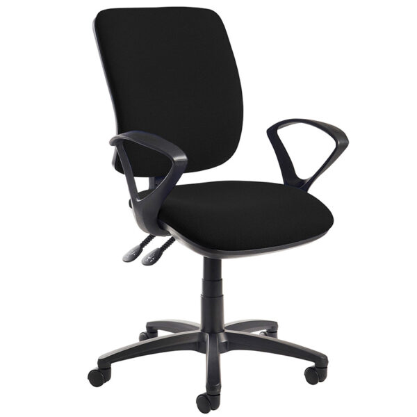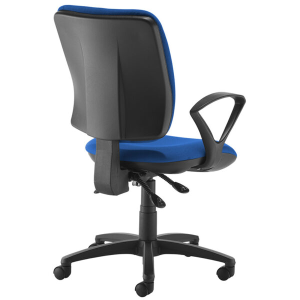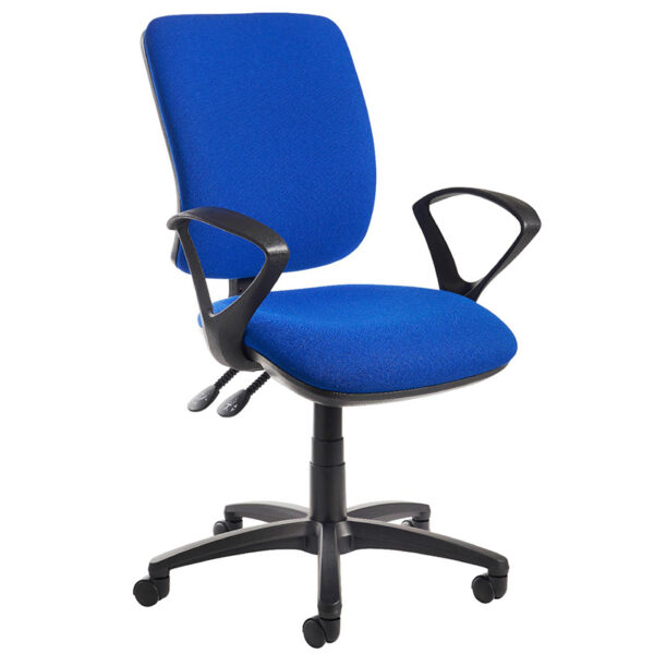 The Senza operator chair combines comfort, reliability and affordability in a sleek, curvaceous design that offers both style and substance. Built with ergonomic precision, it’s available with a high back, extra high back or mesh back to suit a range of working preferences. Designed to support long hours at the desk, the Senza delivers tailored comfort through its asynchro mechanism, allowing a free-floating back action with lockable seat and back positions. Upholstered in durable fabric and stocked in blue and black—with made-to-order options available—it features CMHR high-resilience foam for added comfort, gas height adjustment, independent seat tilt, and adjustable back rake and height.