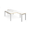 The Connect II Bench Desks system features a robust steel subframe paired with bench tops that appear to float, creating a sleek and minimalist look ideal for contemporary workplaces. Designed with shared desk legs, this sit-stand desk configuration efficiently maximizes space while maintaining an aesthetically pleasing, cost-effective, and practical solution for high-density office environments.