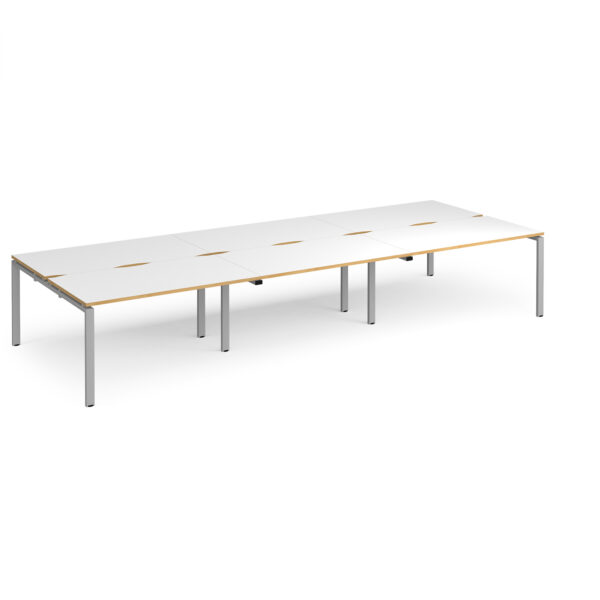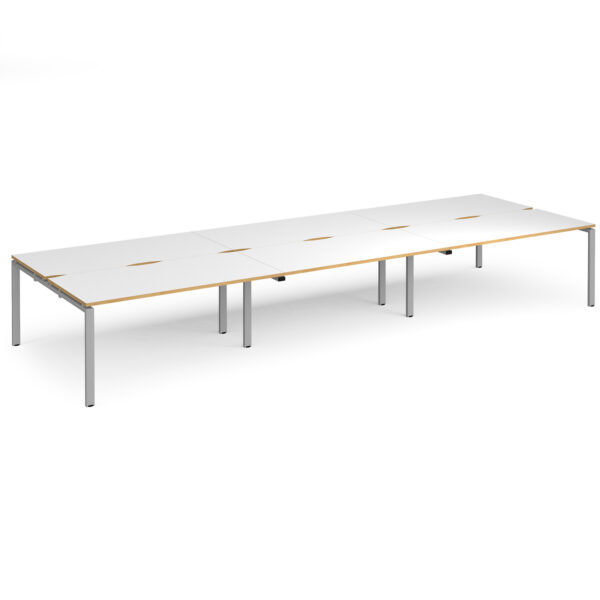 The Connect II Bench Desks system features a sturdy steel subframe supporting bench tops that create a floating effect, delivering a clean, minimalistic aesthetic perfect for modern workplaces. Designed with shared desk legs, this triple back-to-back configuration maximizes workspace efficiency, making it a highly practical and cost-effective solution for high-density office environments. At 1600mm deep, these desks provide ample surface area to accommodate a variety of work styles. The Connect II Bench Desks set a new standard for collaborative, flexible, and stylish office design.