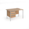 The Benito Straight Desk offers a compact yet highly functional workspace, featuring a stylish beech melamine top paired with a durable graphite H-frame leg for stability and modern appeal. Equipped with a 3-drawer pedestal, this desk provides convenient storage to keep your essentials organized and within easy reach. Part of the versatile Benito range, it’s designed to meet diverse office needs with options including cantilever, H-frame, and panel end leg styles. Complement your setup with coordinated pedestals, bookcases, and cupboards, creating a cohesive and efficient office environment without compromising on style or budget.
