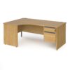 Designed for comfort and efficiency, the Benito Left Hand Ergonomic Desk combines practical workspace features with thoughtful ergonomic considerations. This model includes a 2-drawer pedestal for essential storage and a sturdy panel end leg design that ensures durability and style. The Benito range offers a variety of configurations—including cantilever leg, H-frame leg, and panel end leg options—allowing you to tailor your workspace to meet your functional needs and aesthetic preferences. Complement your desk with coordinated storage solutions such as pedestals, bookcases, and cupboards, creating a well-organized and productive office environment that supports your workflow.