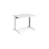 Designed for performance and style, the Lillo Cable Managed Straight Desk combines modern aesthetics with smart functionality. Featuring a height-settable silver cantilever frame, this desk offers ergonomic flexibility to suit a variety of workplace needs. The integrated cable management system discreetly organises cables within the leg frame, helping maintain a tidy and hazard-free environment.