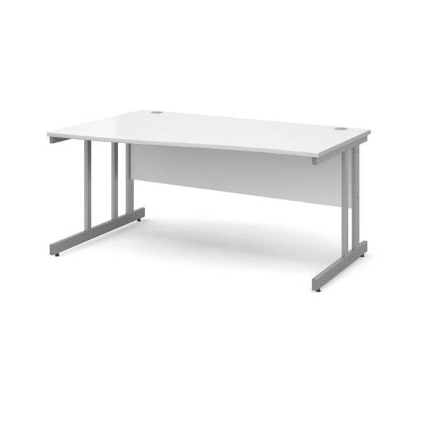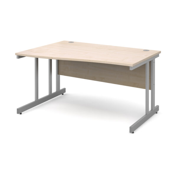 Combining style, performance, and affordability, the Momento desk is built to meet the demands of today’s fast-paced business environment. This modern take on a classic design features a robust yet sleek silver cantilever frame with leveling feet for maximum stability. The modesty panels include scalloped cut-outs, allowing for neat and efficient cable management, making the Momento both functional and visually appealing. Choose from four top finishes to customize your workspace.