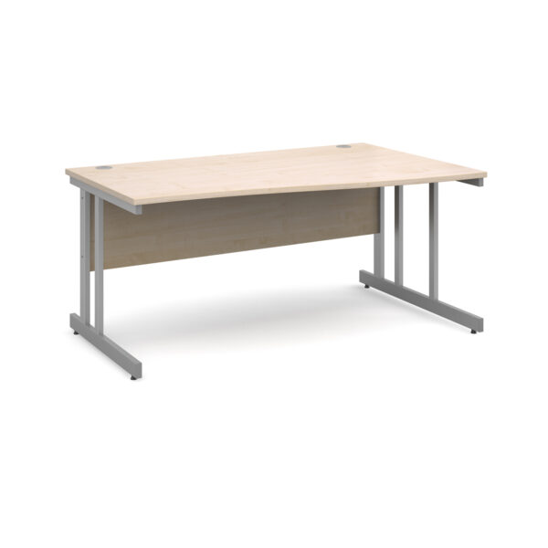 Combining style, performance, and affordability, the Momento desk is built to meet the demands of today’s fast-paced business environment. This modern take on a classic design features a robust yet sleek silver cantilever frame with leveling feet for maximum stability. The modesty panels include scalloped cut-outs, allowing for neat and efficient cable management, making the Momento both functional and visually appealing. Choose from four top finishes to customize your workspace.