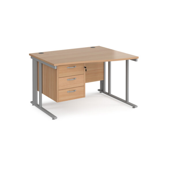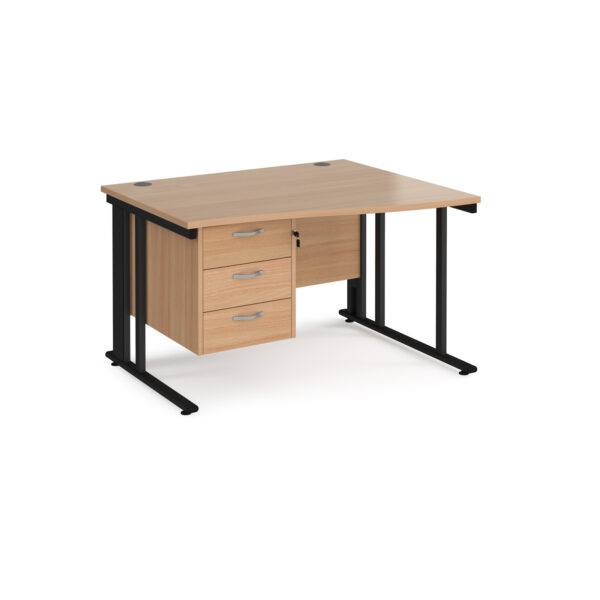 Porto 25 Cable Managed Right Hand Wave Desk with 3 Drawer Pedestal
