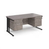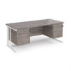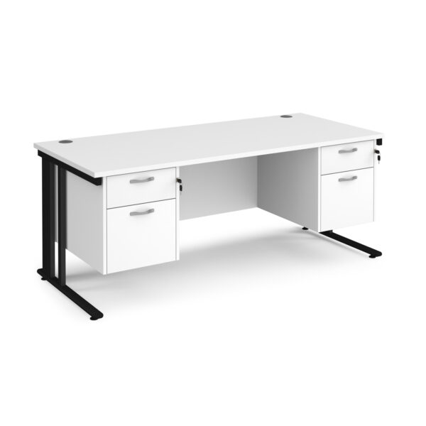 A reliable staple for the modern office, the Porto 25 desk range offers minimal, contemporary styling with a variety of colour options that blend effortlessly into any workspace. This multi-functional desk features an 800mm deep surface complemented by two 2-drawer pedestals, providing practical storage while maintaining a clean, organized look. Designed with integrated cable management, it helps maintain a tidy work environment by effectively controlling cables. The 25mm melamine desktop ensures the durability and stability required in busy commercial office settings, making this desk a functional and stylish solution for diverse office needs.