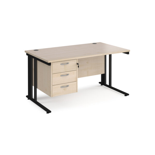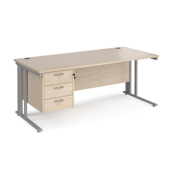 Porto 25 Cable Managed Straight Desk 800mm Deep with 3 Drawer Pedestals