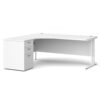 The Porto 25 Left Hand Corner Desk with 3 Drawer Desk High Pedestal is the ideal solution for office managers seeking a stylish yet practical workspace upgrade. With its clean, contemporary design and robust panel end legs, this desk maximises surface area while maintaining a streamlined footprint—perfect for modern office layouts. The integrated desk-high pedestal offers ample storage and helps maintain a clutter-free work zone. Built to support productivity and comfort, the Porto 25 range blends aesthetic appeal with everyday functionality to enhance your office environment and empower your team.